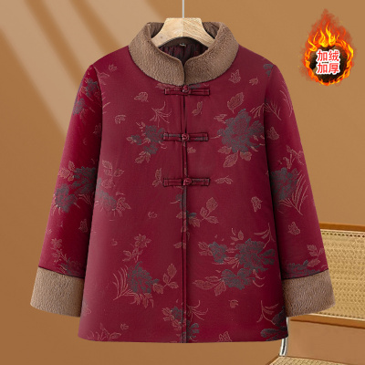新款奶奶装加绒保暖冬季棉衣时尚简约中老年人衣服老太太加厚外套