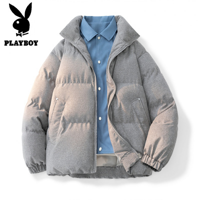 花花公子新款高品质假两件衬衫领棉衣男青年加厚保暖冬季外套男棉服