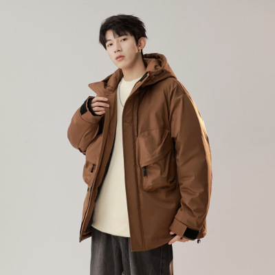 YANXU2023冬季加绒加厚棉衣外套男立领日系复古青少年潮牌运动潮流棉服
