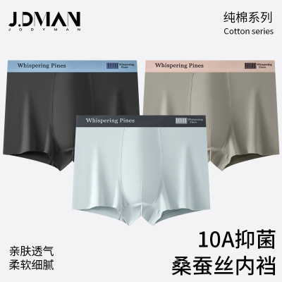 50支纯棉男士内裤 透气棉男士平角裤 桑蚕丝10A抑菌裆内裤男士