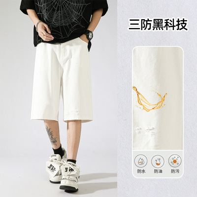 美式潮牌男装牛仔短裤男夏季新款纯色三防休闲直筒裤水洗男士中裤