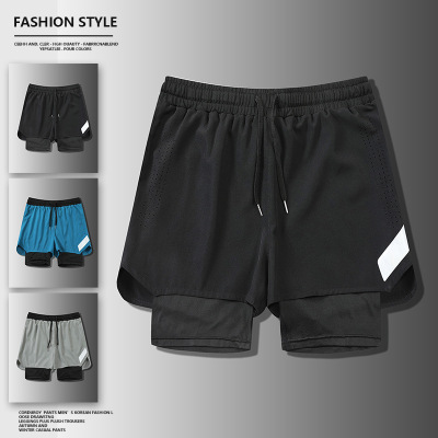 夏季新款男士韩版假两件轻薄冰丝速干美式运动短裤潮网红同款裤子