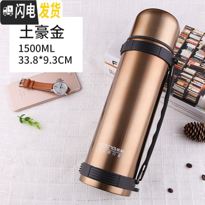 三维工匠304不锈钢保温壶1.5大容量旅行车载保温杯男户外便携水壶家用1.2 1500金色KP送礼