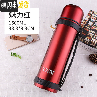 三维工匠304不锈钢保温壶1.5大容量旅行车载保温杯男户外便携水壶家用1.2 1500红色KP送礼