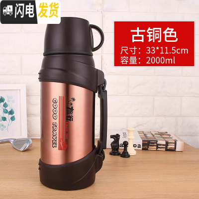 三维工匠旅行车载保温壶大容量 2户外大号保温杯便携2000不锈钢水壶 2000古铜色