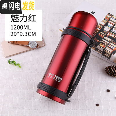 三维工匠304不锈钢保温壶1.5大容量旅行车载保温杯男户外便携水壶家用1.2 1200红色KP送礼