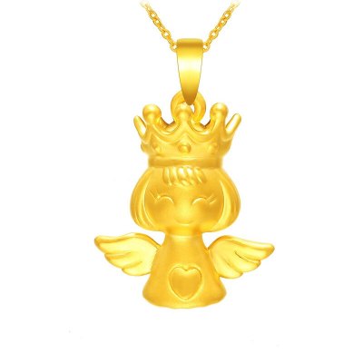 GZUAN古钻珠宝 皇冠天使 黄金吊坠 3D硬金女士吊坠送女友 YJD0001