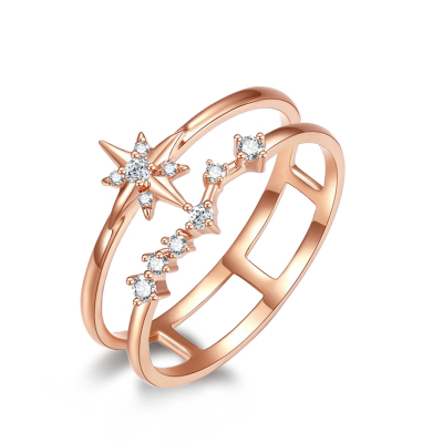 GZUAN古钻 漫漫星河 18K金镶钻石双层戒指/钻戒女士结婚求婚戒指 J1834