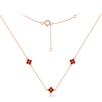 GZUAN古钻珠宝 18K金四叶草红玛瑙时尚女士项链套链 D1884