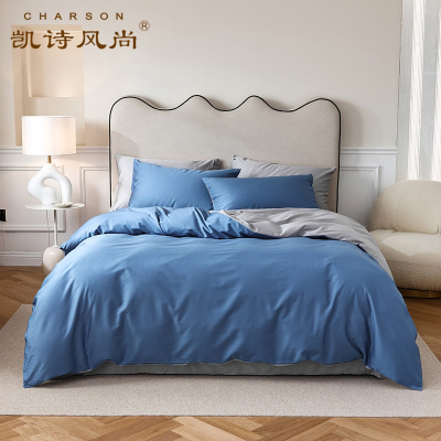 凯诗风尚(CHARSON)四件套 苏宁自营 100支澳棉双拼素色简约贡缎全棉套件单人学生宿舍床上用品纯棉床单被套双人
