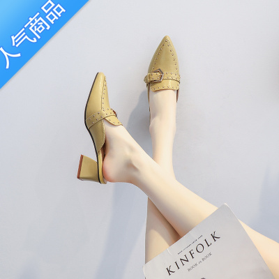 SUNTEK包头凉鞋女2023新款春夏季百搭仙女风温柔中跟粗跟高跟鞋尖头单鞋