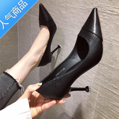 SUNTEK单鞋女黑色百搭2023年春夏新款不累脚职业细跟软皮舒适高跟鞋尖头
