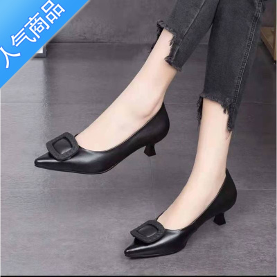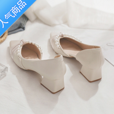 SUNTEK2023年春季新款网红浅口粗跟高跟晚晚温柔仙女风尖头侧空单鞋女夏