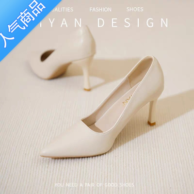 SUNTEK不累脚米白色高跟鞋女尖头细跟2023春主持艺考礼仪浅口配裙单鞋子