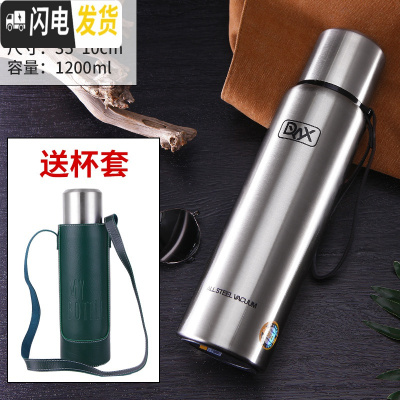 三维工匠大容量1200全不锈钢子保温杯男女式保温壶户外运动水杯子 加厚本色1200送皮革杯套杯刷