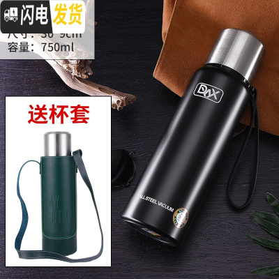 三维工匠大容量1200全不锈钢子保温杯男女式保温壶户外运动水杯子 加厚黑色750送皮革杯套杯刷