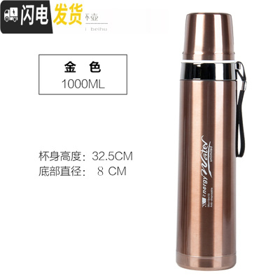 三维工匠1大容量304不锈钢保温杯男女学生子便携水杯户外运动车载杯 金色100010号送杯套杯刷