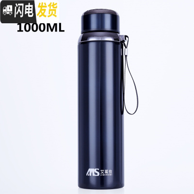 三维工匠保温杯大容量带网男女士便携不锈钢水壶大号户外运动保温壶800 艾茗仕蓝色1000[送杯套]