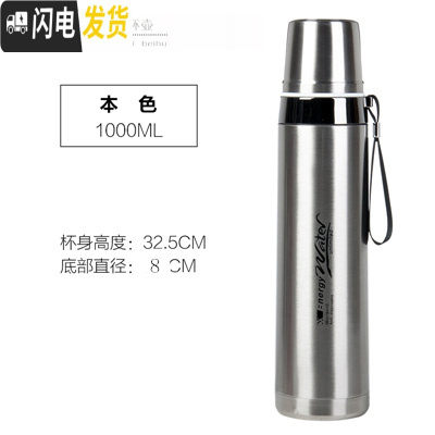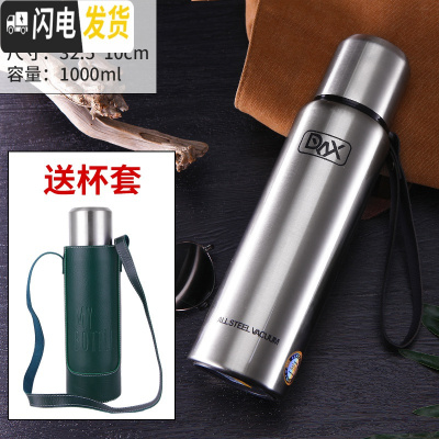 三维工匠大容量1200全不锈钢子保温杯男女式保温壶户外运动水杯子 加厚本色1000送皮革杯套杯刷