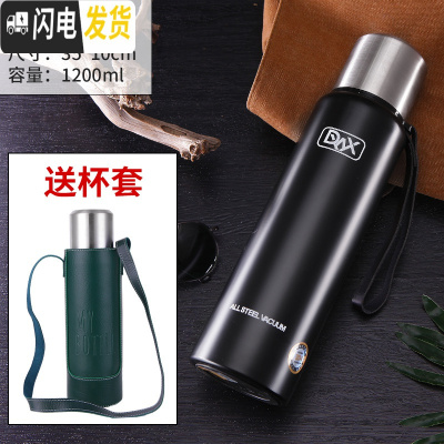 三维工匠大容量1200全不锈钢子保温杯男女式保温壶户外运动水杯子 加厚黑色1200送皮革杯套杯刷