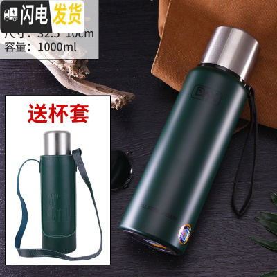 三维工匠大容量1200全不锈钢子保温杯男女式保温壶户外运动水杯子 加厚绿色1000送皮革杯套杯刷