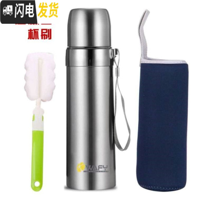 三维工匠1大容量304不锈钢保温杯男女学生子便携水杯户外运动车载杯 本色100010号送杯套杯刷
