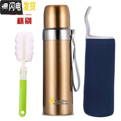 三维工匠韩版保温杯男女水杯儿童便携大容量小学生户外运动304不锈钢水杯 金色+杯刷+杯套500