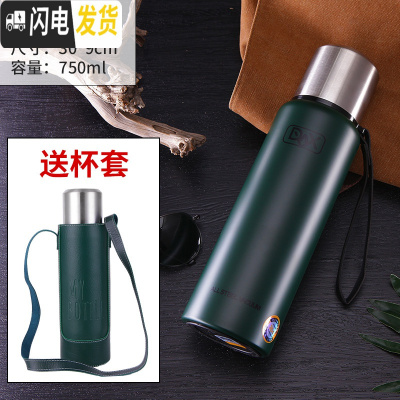 三维工匠全钢304不锈钢保温杯1.5大容量男女便携泡茶户外运动水壶1000 750绿色送杯刷十杯套