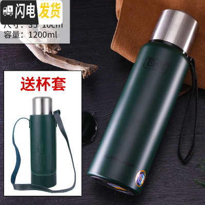 三维工匠大容量1200全不锈钢子保温杯男女式保温壶户外运动水杯子 加厚绿色1200送皮革杯套杯刷