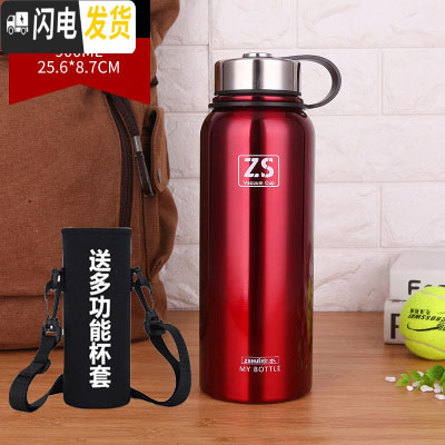 三维工匠大号保温杯304不锈钢大容量1000便携户外运动水壶男女泡茶水杯 红色900送杯套杯涮杯垫