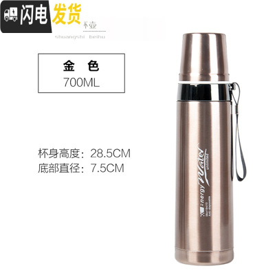 三维工匠1大容量304不锈钢保温杯男女学生子便携水杯户外运动车载杯 金色70010号送杯套杯刷