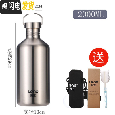 三维工匠304不锈钢水杯单层不保温夏季凉水壶大容量男女便携车载户外运动 304全钢单层2000送全套保温杯