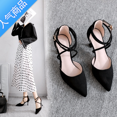 SUNTEK网红2023新年款式法少女高跟鞋细跟水钻成年礼服一字带扣尖头婚鞋