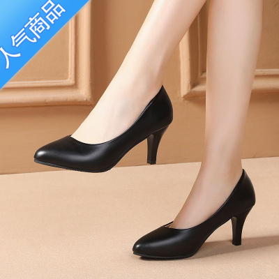 SUNTEK高跟鞋女2022年春秋新款软皮黑色工作鞋女细跟久站不累脚职业单鞋