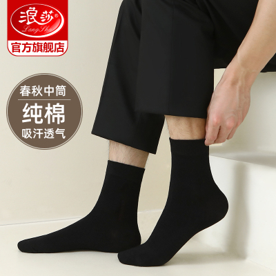 浪莎袜子男士纯棉中筒春秋薄款黑色长袜夏季短袜吸汗全棉男袜防臭