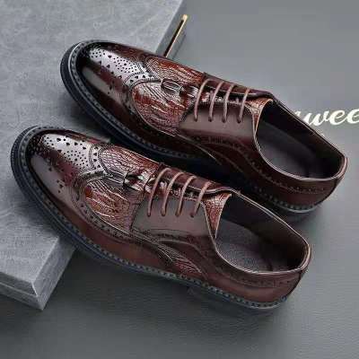 2025春季男鞋真皮透气百搭商务休闲英伦布洛克皮鞋男士高档结婚鞋