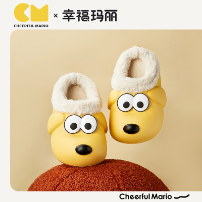 幸福玛丽亲子儿童棉拖鞋冬季男孩家居室内女宝宝eva防水拖鞋秋冬