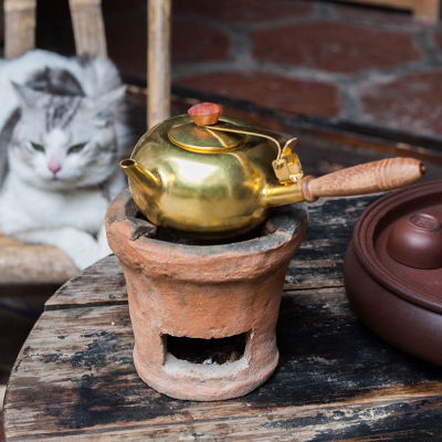 美帮汇潮州手打铜砂铫功夫茶壶手工煮水养生侧把铜壶小号素面木把手