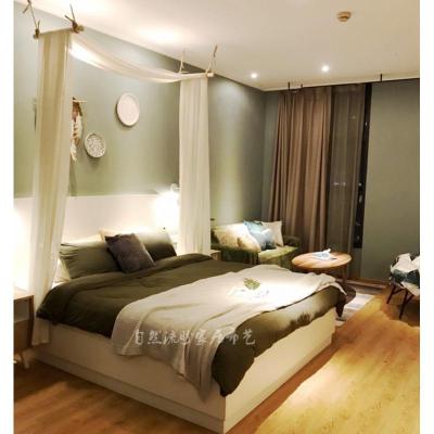 美帮汇短木吊杆纱幔东亚风美式民宿客栈中式四柱双人麻纱床幔床帘带杆