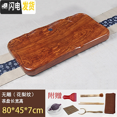 三维工匠黑檀木整块实木茶盘大号加厚花梨木功夫茶具茶海简约家用排水茶台 桔色大平板--花梨纹