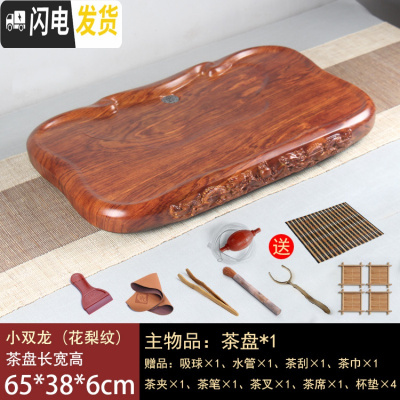三维工匠花梨黑檀木整块实木茶盘家用功夫茶具套装排水茶台茶海长方形简约 小双龙(花梨纹)