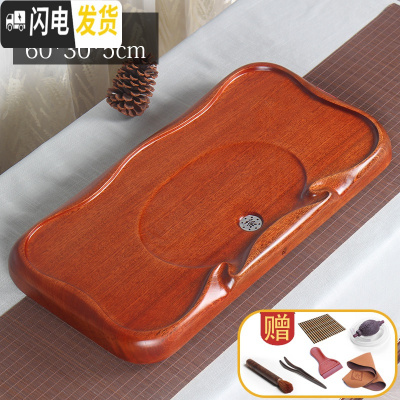 三维工匠花梨黑檀木茶盘整块实木家用排水茶台茶海大小号功夫茶具套装简约 花梨-平步青云(60*30*5cm)