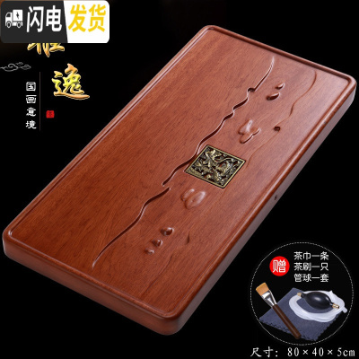 三维工匠花梨木茶盘整块家用实木功夫茶具大日式红木简约木茶海茶托茶托盘 花梨雅逸[80*40*5cm]