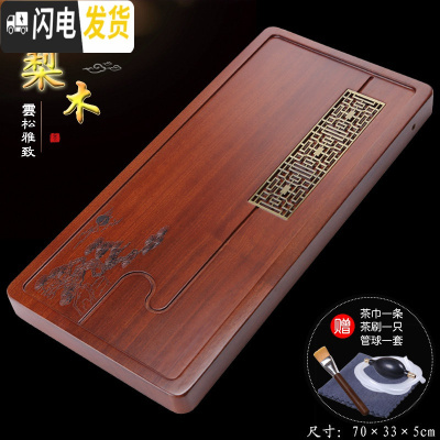 三维工匠花梨木茶盘整块家用实木功夫茶具大日式红木简约木茶海茶托茶托盘 花梨雲松[70**33*5cm]
