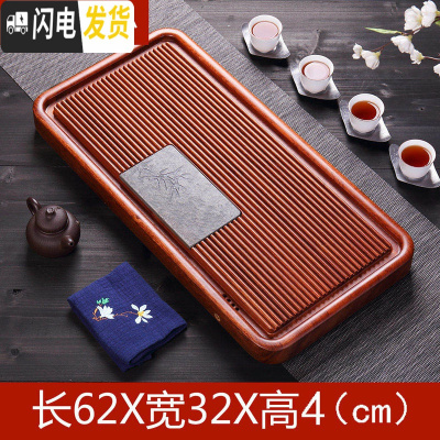 三维工匠花梨木茶盘整块实木家用电木功夫小茶具简约红木茶海托盘小型茶台 南非花梨-竹报平安62*32*4