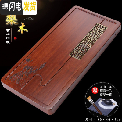 三维工匠花梨木茶盘整块家用实木功夫茶具大日式红木简约木茶海茶托茶托盘 花梨雲松[80*40*5cm]