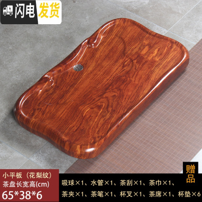 三维工匠茶盘家用花梨黑檀木整块实木功夫茶具套装排水茶台茶海长方形简约 小平板-花梨纹65*38*6cm