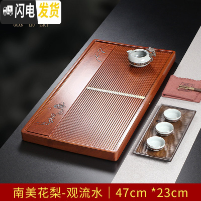 三维工匠花梨木茶盘整块实木家用茶海大小号单层排水简约茶台功夫茶具 南美花梨-观流水47x23x4.5