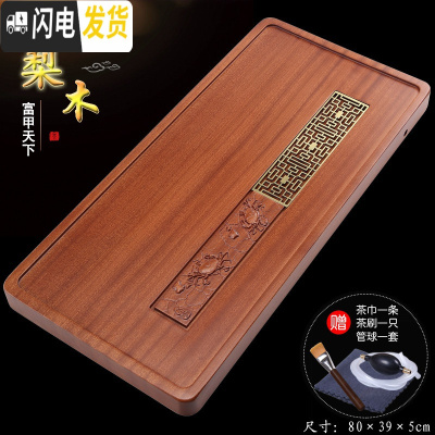 三维工匠花梨木茶盘整块家用实木功夫茶具大日式红木简约木茶海茶托茶托盘 花梨富甲天下[80*39*5cm]