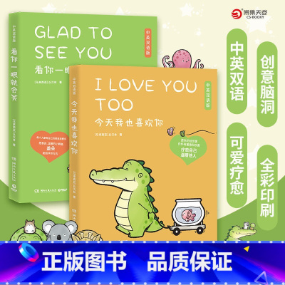 [正版] 2册套装 今天我也喜欢你+看你一眼就会笑 丘汉林治愈系卡通绘本故事小鳄鱼盖朵漫画书双语版暖心漫画书籍
